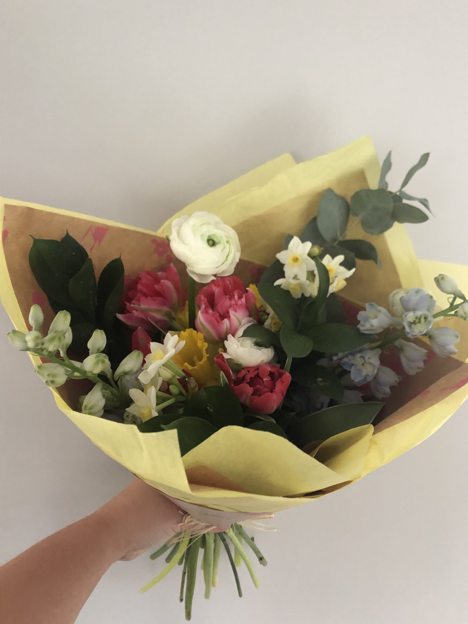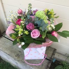 This Mothers Day seasonal bouquet is a spring handtie wrapped bouquet of the seasons finest flowers and greenery, bouquets will include tulips, hyacinth, ranunculus and florist choice of flowers. This bouquet comes wrapped.